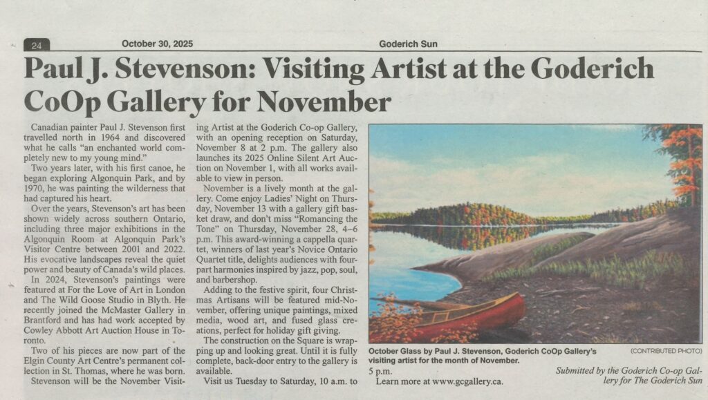 Paul J Stevenson:Visiting Artist At the Goderich Co-oP Gallery For November 2025